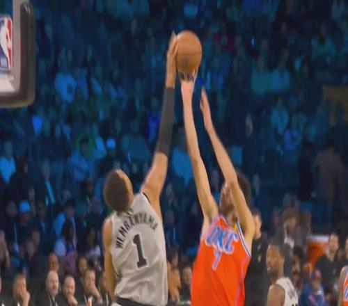 雷霆排出了他们的防守悍将卡鲁索与外星人对位,其实收到过阶段性效果,但不妨碍文班一一破解,漂移中投被推腰 依旧无解轰进。